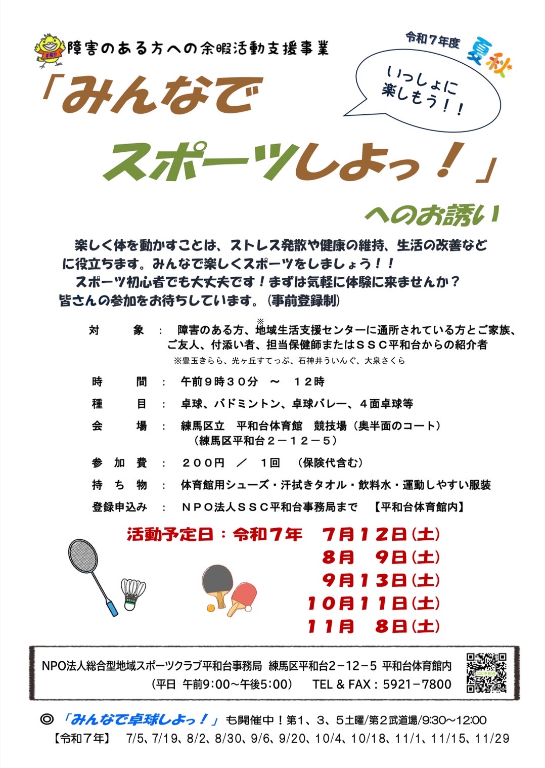 障害のある方、地域生活支援センター(豊玉きらら、光が丘ステップ、石神井ういんぐ、大泉さくら)に通所されている方とご家族、ご友人、付添い者、担当保健師またはSSC平和台からの紹介者
